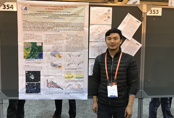 永利yl23411官网刘建强、张帅博士受邀参加了在美国新奥尔良举办的AGU(American Geophysical Union Fall Meeting,美国地球物理学会年会)2017学术年会。刘建强博士展示了题为“Genesis of Cenozoic intraplate high Mg# andesites in Northeast China”的学术海报,张帅博士做了题为“The SST and sub-SST variation in the core region of the WPWP over the last four glacial cycle”的邀请报告,都得到了国内外专家同行的认可和好评。