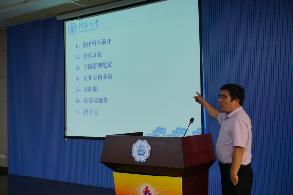 随后,副院长白学志老师上台介绍本科生教学情况,海洋科学专业很丰富,很庞大。白学志老师的介绍使新生对永利yl23411官网有了进一步的了解。