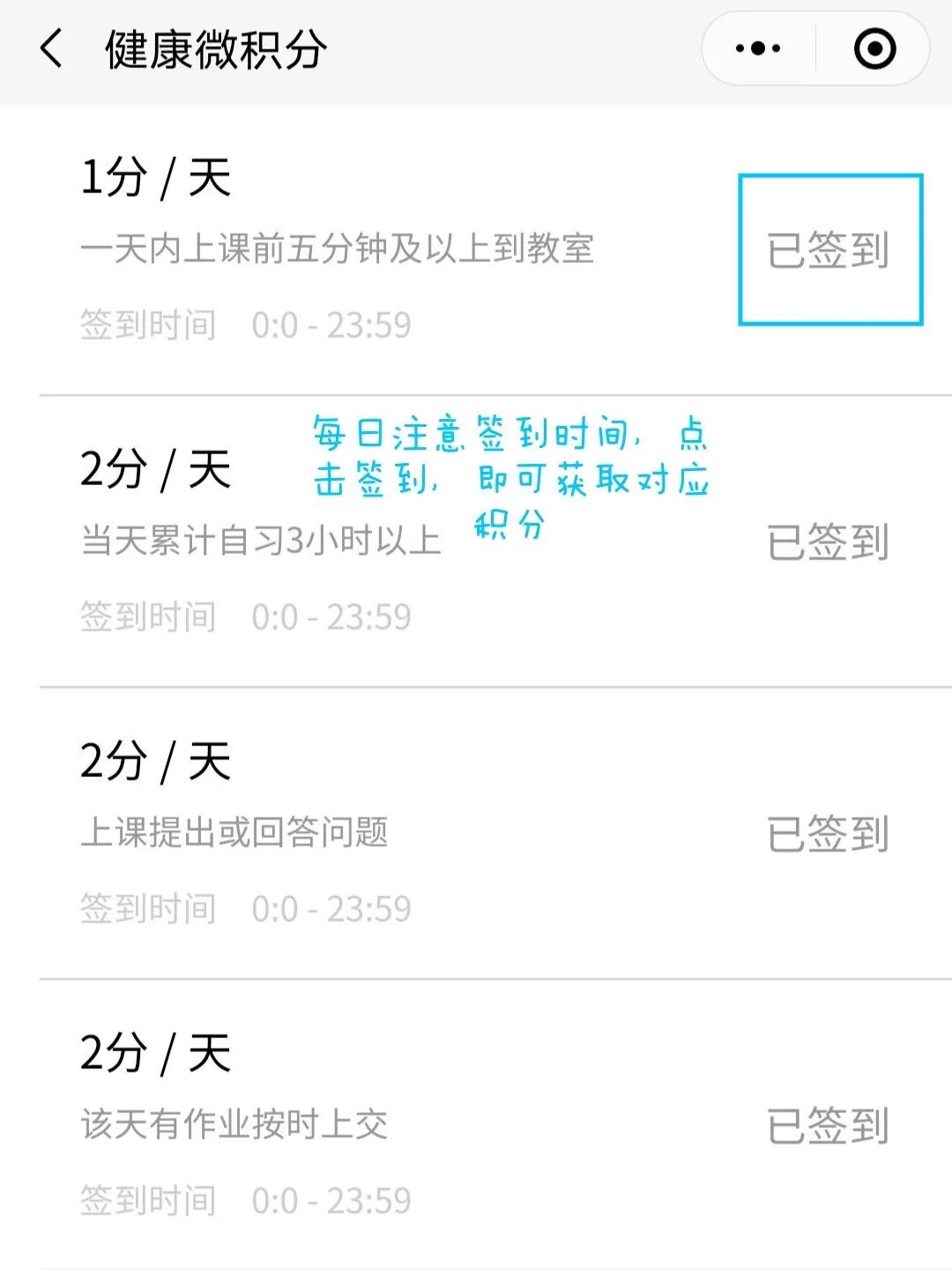 每天注意签到时间,点击签到,即可获得对应积分。