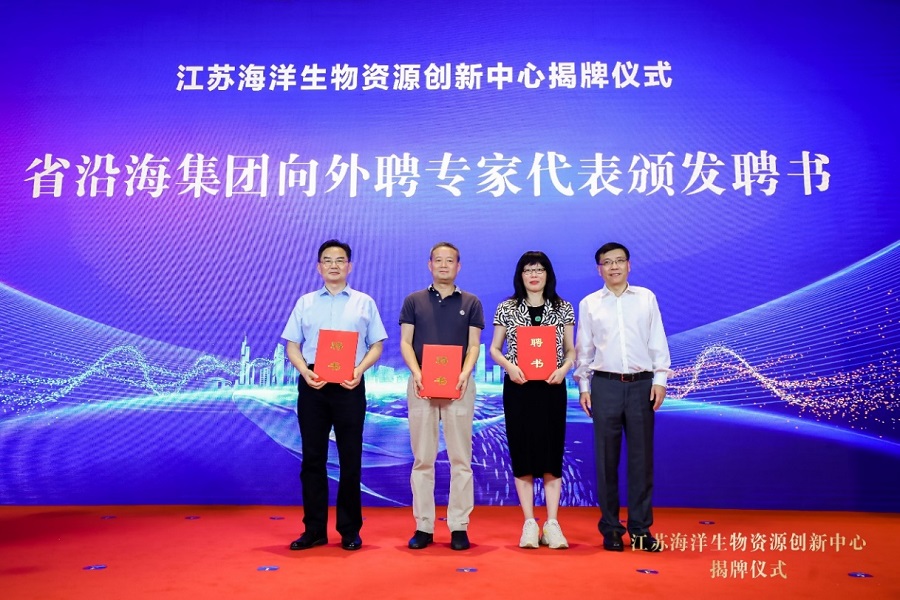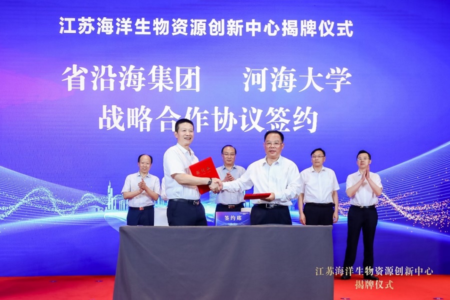 8月26日,永利yl23411官网与江苏省沿海开发集团有限公司共建江苏海洋生物资源创新中心揭牌仪式在南京举行。江苏省沿海开发集团有限公司党委书记、董事长邓东升,永利yl23411官网校长徐辉,江苏省国资委一级巡视员彭向峰,江苏省发展和改革委员会副主任林康,江苏省自然资源厅二级巡视员赵钧等出席仪式。江苏省沿海开发集团有限公司总经理、党委副书记周金阳,江苏省沿海开发投资有限公司党委书记、董事长胡国平,永利yl23411官网科技处处长王锦国,江苏省海洋学会理事长、永利yl23411官网教授齐义泉,永利yl23411官网院长宋翔洲出席活动。
