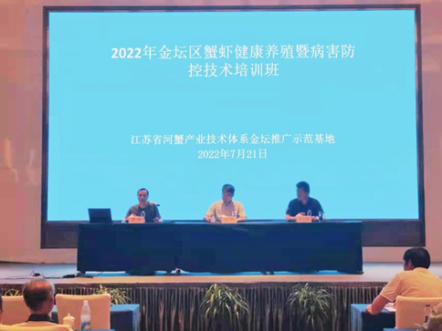 为稳经济贡献智慧。2022年7月,针对蟹、虾疾病高发的态势及新发疾病不断出现的实际情况,为了更好的指导养殖生产,服务渔民,支部党员赵哲同志(江苏省大宗鱼类产业技术体系病害团队岗位科学家)应江苏省河蟹产业技术体系邀请,为蟹虾健康养殖暨病害防控技术培训班学员授课,金坛区各乡镇农技人员、养殖大户共计110余人参加了此次培训,取得了良好的效果。9月,赵哲同志接到四川省绵阳市大宗鱼养殖户求助,反馈其养殖的裸鲤短期内出现大量死亡,为了快速帮助养殖户解决生产问题,扩大省产业体系的影响力,赵哲同志带领支部党员与养殖户对接,通过远程诊断对濒死鱼进行查看,对水质进行分析,对发病过程进行了解,确定疾病为鲤鱼疱疹病毒病,根据实际情况给出了防控的建议,使疾病得到快速有效控制。